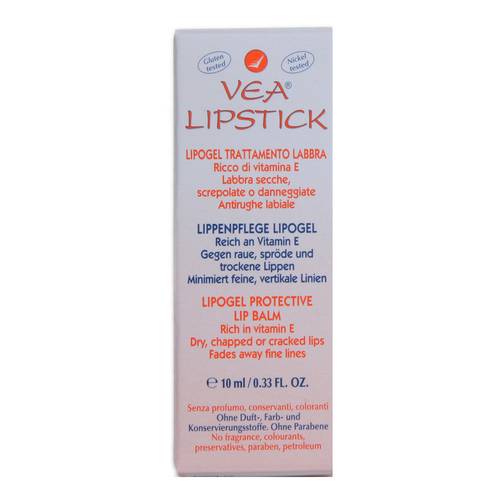 VEA LIPSTICK Lipogel per uso labiale, ricco di olio VEA (Vitamina E acetato allo stato puro), con azione idratante, protettiva e lenitiva. Utile per labbra secche, screpolate o danneggiate da agenti esterni, contro l’invecchiamento labiale. L’uso costante, oltre a mantenere in buono stato (morbide e idratate) le labbra, può contribuire a ritardare e/o ad attenuare i fenomeni di invecchiamento e le rugosità labiali grazie all’azione antiossidante (antiradicali liberi) della vitamina E. Non contiene acqua, conservanti, profumi, oli essenziali, coloranti, per minimizzare i rischi di allergia. Modalità d'uso Applicare almeno due...