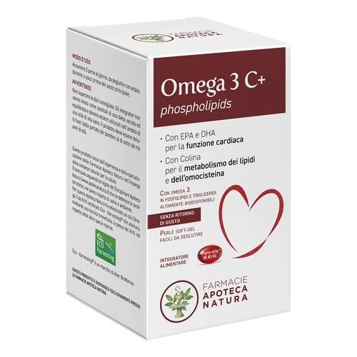 Omega 3 C+Descrizione Integratore alimentare a base di un concentrato oleoso di krill (Euphausia superba). Il krill contiene naturalmente sostanze utili, quali acidi grassi polinsaturi (EPA e DHA) che contribuiscono alla normale funzione cardiaca* e colina che contribuisce al normale metabolismo dei lipidi e dell’omocisteina. A differenza degli oli di pesce, Omega 3 C+ phospholipids contiene EPA (acido eicosapentaenoico) e DHA (acido docosaesaenoico), in una miscela di trigliceridi e fosfolipidi, ad elevato assorbimento e biodisponibilità, oltre a colina e astaxantina, un carotenoide che conferisce naturalmente una colorazione rossa al...
